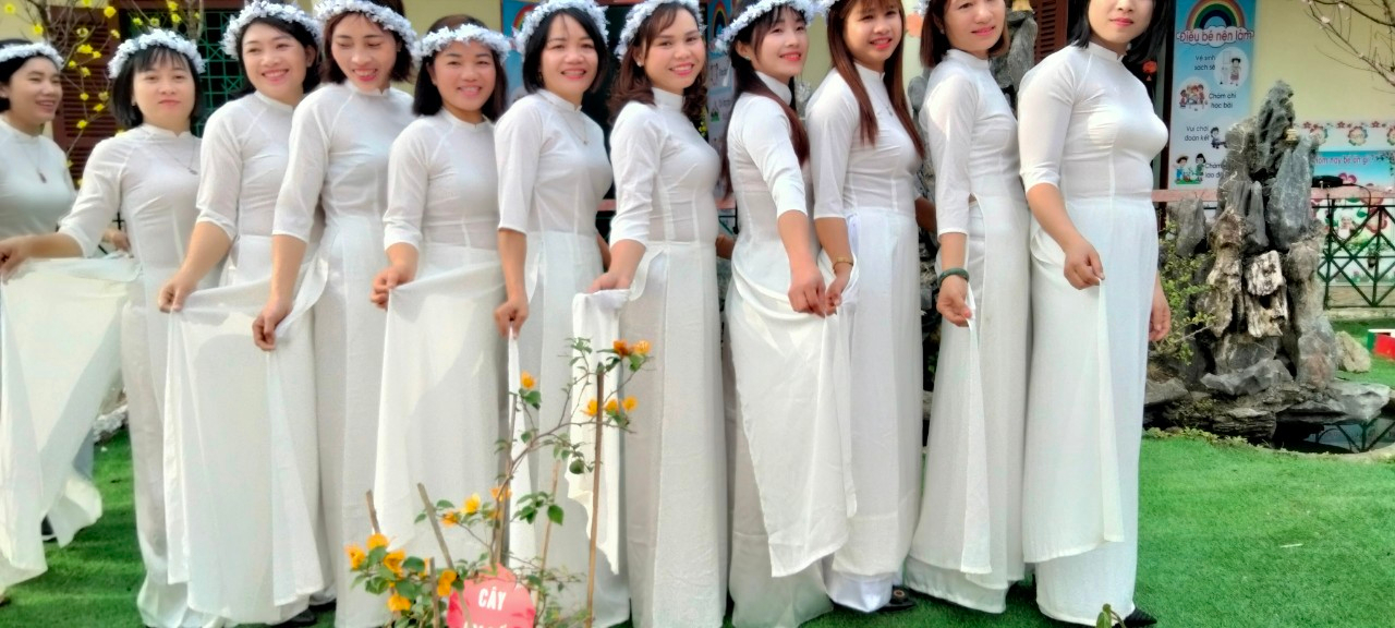 TÔN VINH NGƯỜI PHỤ NỮ VIỆT NAM Thực hiện kế hoạch số 18/KH-BTV ngày 17/8/2022 . Về việc tổ chức các hoạt động kỷ niệm 112 năm ngày Quốc tế Phụ nữ 8/3 và 1982 Khởi nghĩa Hai Bà Trưng. Mục đích nhằm tuyên truyền sâu rộng về ý nghĩa Quốc tế Phụ nữ 8/3 và 1982 Khởi nghĩa hai Bà Trưng “ Anh Hùng _Bất khuất _Trung hậu _đảm Đang” Thực hiện kế hoạch ban Phụ nữ trường Mầm non Quài nưa đẩy các phong trào hoạt động sôi nổi của nhà trường .Tổ chức hoạt động thiết thực hưởng ứng “Tuần lễ áo dài” nhằm tôn vinh những giá trị văn hóa truyền thống phong tục tập quán tốt đẹp của dân tộc Việt Nam của người Phụ nữ Việt nam.